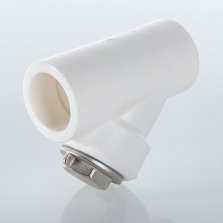 (VTp.786.0) Фильтр с корпусом из полипропилена и сетчатым элементом из нержавеющей стали марки AISI 304, предназначенный для очистки транспортируемой жидкости от нерастворимых примесей размером от 300 мкм. Используется в составе систем из полипропиленовых труб c рабочей температурой до 90 °С и при номинальном давлении (PN) 25 бар. Пробка и закладная деталь фильтра выполнены из латуни марки CW617N, никелированы, уплотнительная прокладка – из синтетического каучука EPDM. Монтаж фильтра производится методом раструбной сварки. Присоединения – внутреннее/внутреннее.