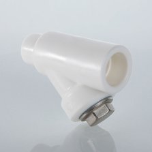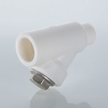 (VTp.787.0) Фильтр с корпусом из полипропилена и сетчатым элементом из нержавеющей стали марки AISI 304, предназначенный для очистки транспортируемой жидкости от нерастворимых примесей размером от 300 мкм. Используется в составе систем из полипропиленовых труб c рабочей температурой до 90 °С и при номинальном давлении (PN) 25 бар. Пробка и закладная деталь фильтра выполнены из латуни марки CW617N, никелированы, уплотнительная прокладка – из синтетического каучука EPDM. Монтаж фильтра производится методом раструбной сварки. Присоединения – внутреннее/наружное.