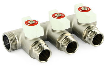 Предназначен для распределения воды в системах водоснабжения. Оснащен шаровыми кранами c двухсторонним цветным кольцом (красным и синим) для обозначения подключения к системе холодного или горячего водоснабжения.