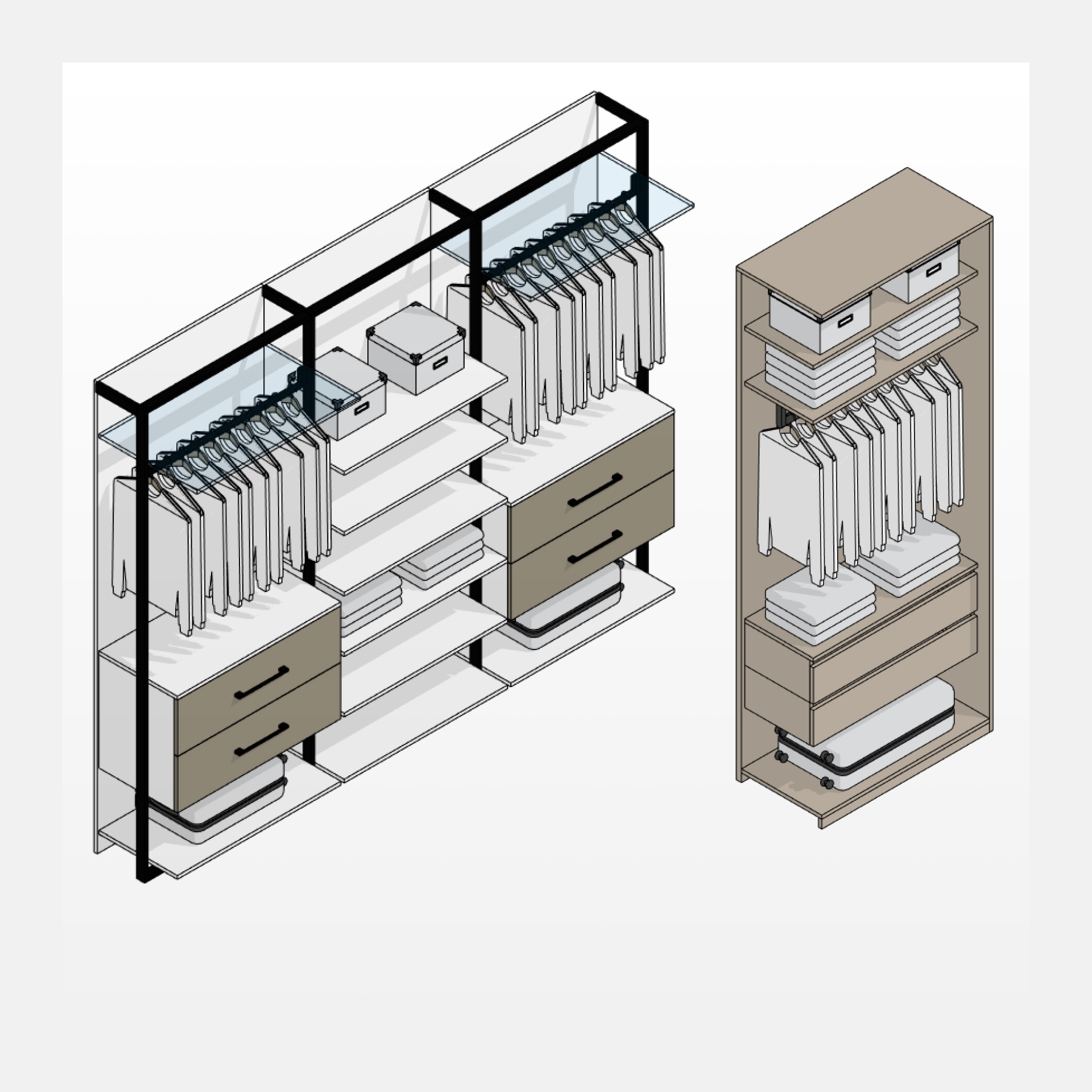 Параметрические семейства для проектирования разных систем гардероба в Autodesk Revit.