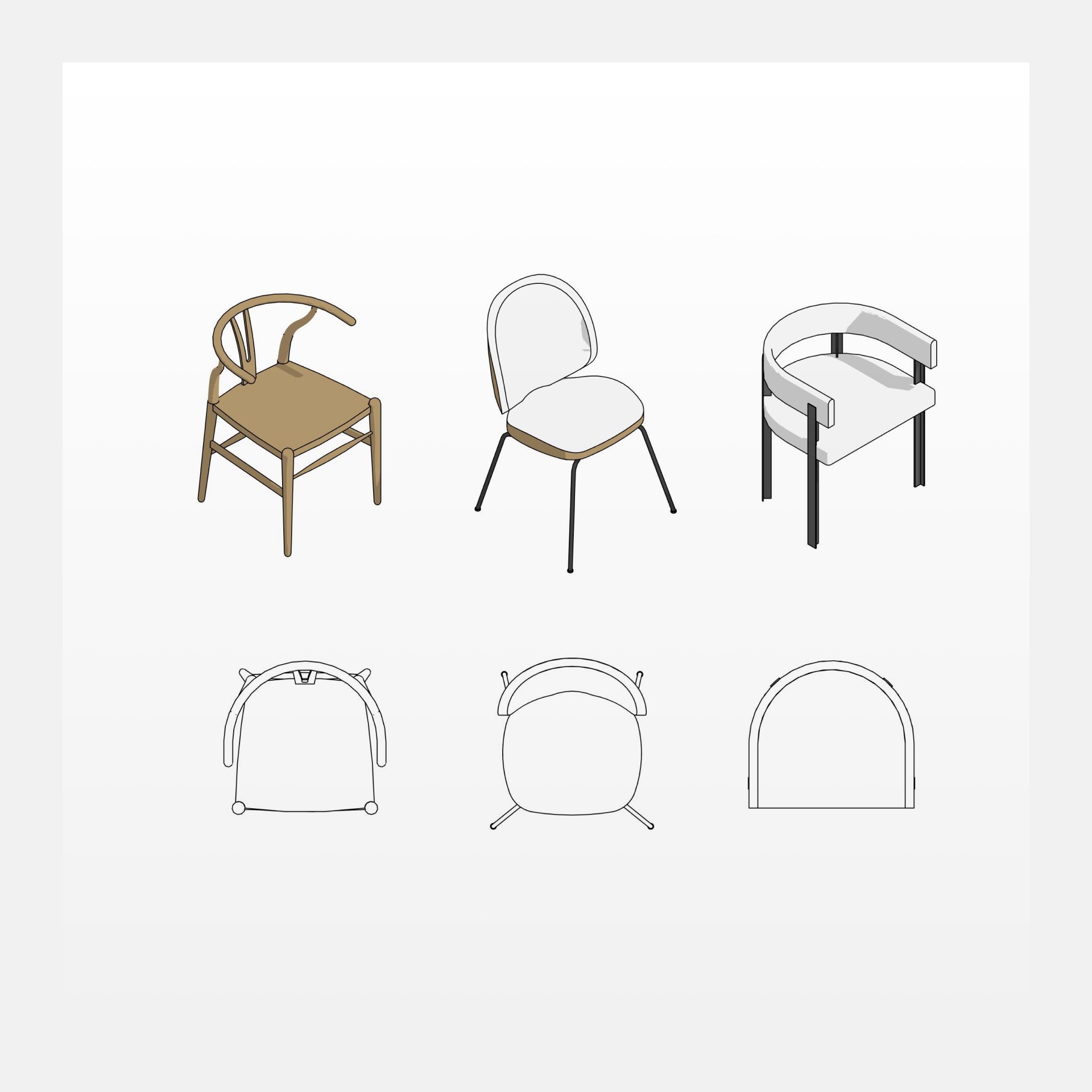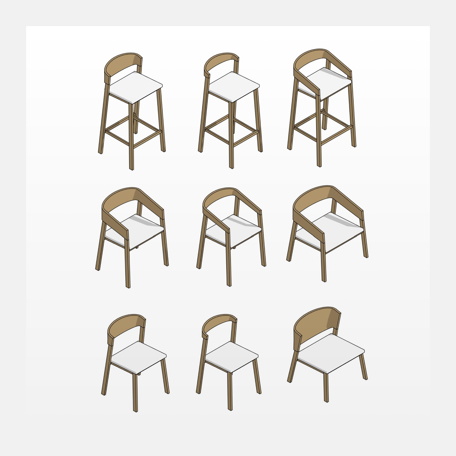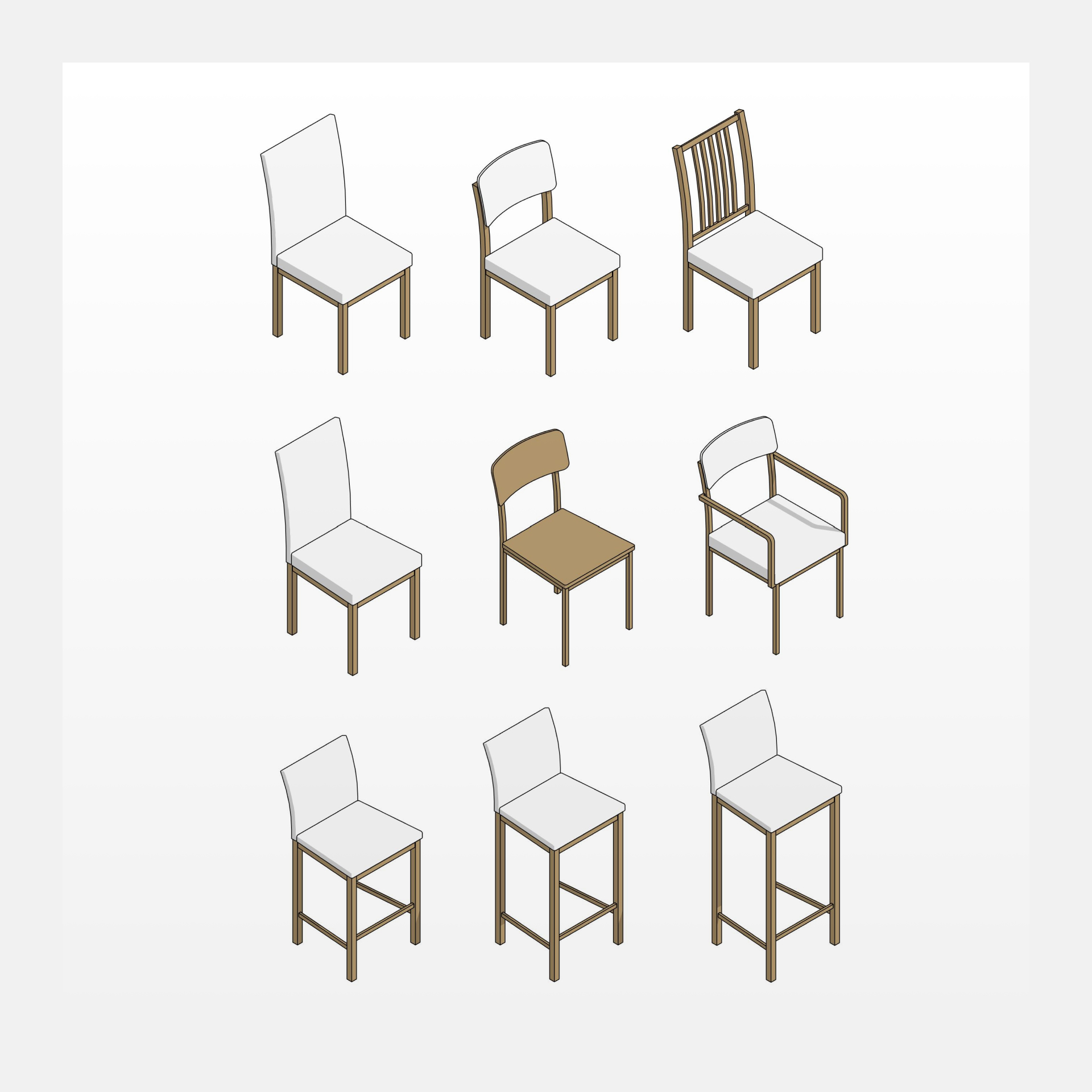 Семейства стульев для дизайнеров интерьера и архитекторов. В наборе есть полностью параметрические и дизайнерские семейства с частично меняющимися параметрами