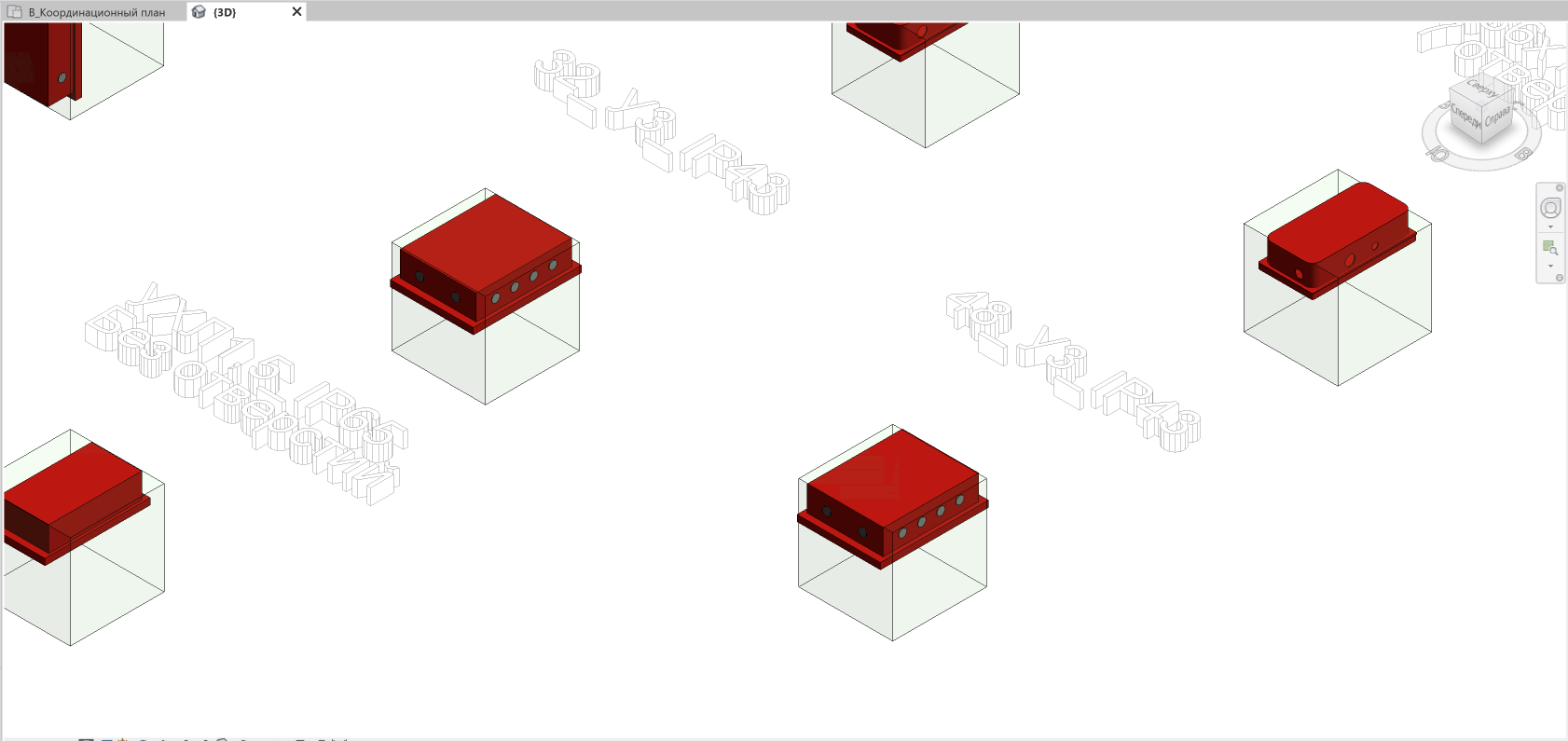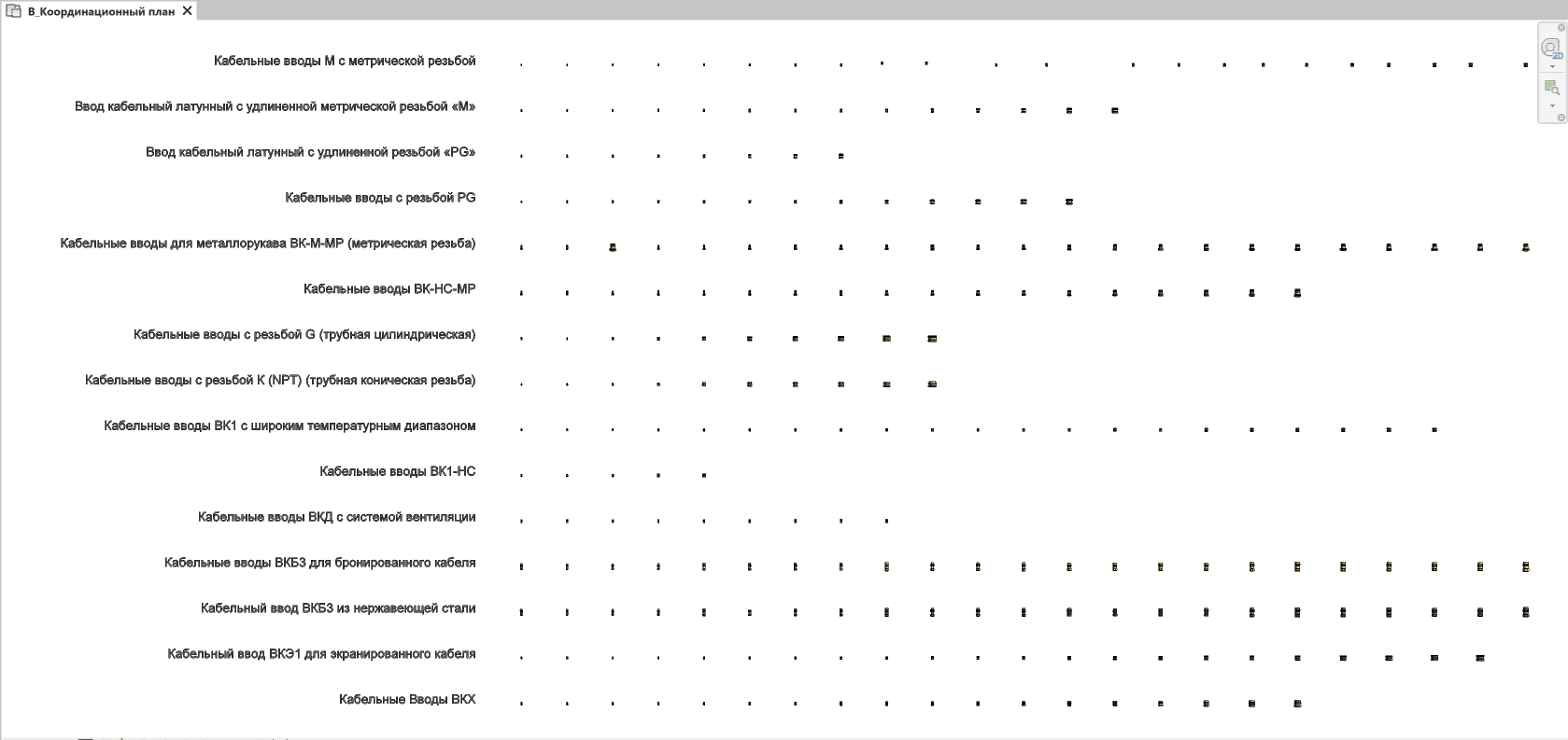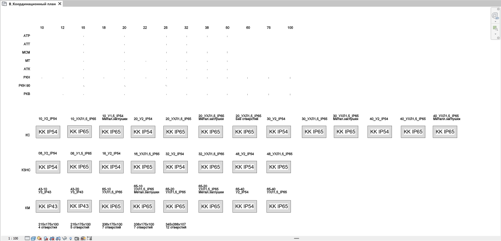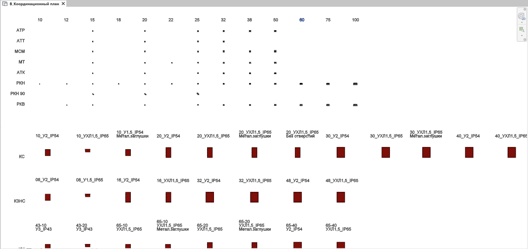Семейства имеют несколько уровней детализации, а коробки имеют УГО и зону монтажную зону.