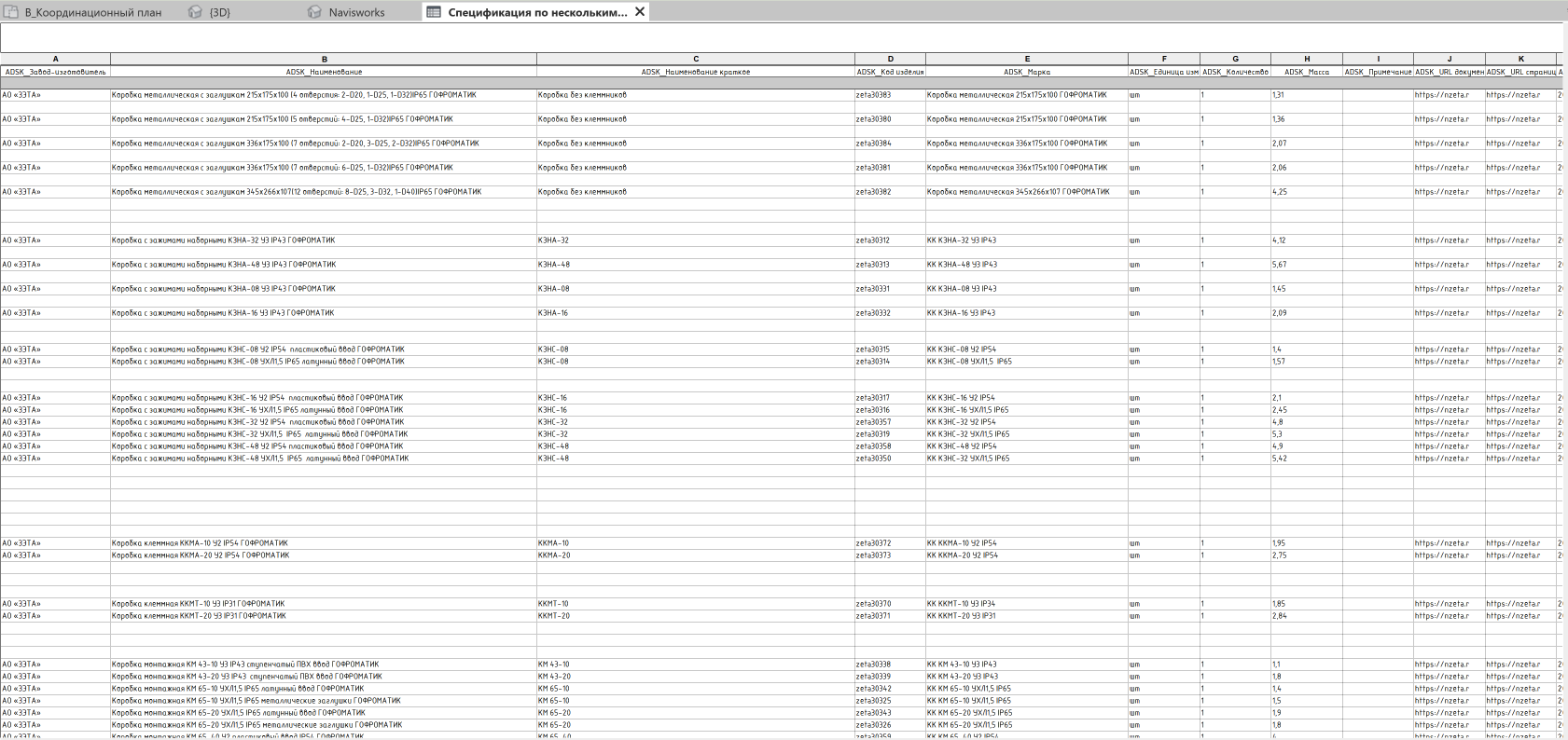 Внутри загружен и размещен на 3D виде полный каталог продукции и настроена ведомость оборудования.