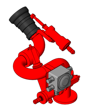 Версия Revit 2017. Ствол пожарный лафетный водопенный универсальный, с дистанционным управлением, стационарный, с расходами 50,60,70,80 л/с, во взрывозащищённом исполнении. Предназначен для формирования струи огнетушащего вещества с изменяющимся углом распыливания от сплошной струи до распыленной, с углом факела 90 градусов. Лафетные стволы применяются во взрывоопасных зонах для тушения пожаров, охлаждения строительных и технологических конструкций, осаждения облаков ядовитых или радиоактивных газов, паров и пылей. Обозначение изделия: АБМИ.074.00.000-028 Обозначение изделия по которому выполнена 3D-модель: АБМИ.074.00.000-028