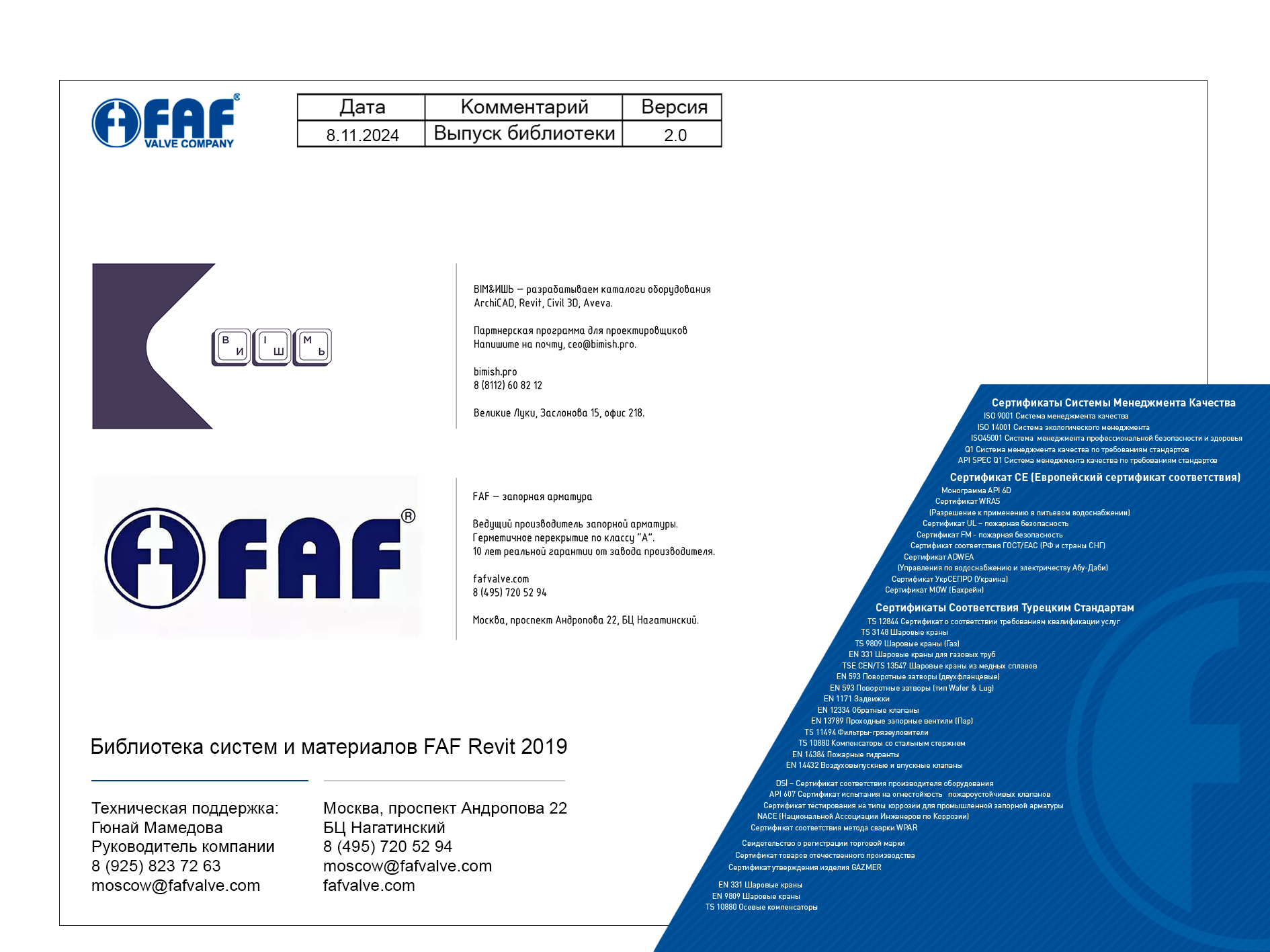 ФОП 2019 FAF файл каталога RVT 2019 — каталог моделей и ведомость оборудования по ГОСТ