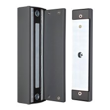 Влагозащищенный холодостойкий электромагнитный замок ALM-350FTK с усилием удержания 350 кгс предназначен для накладного монтажа на опорный столб распашной калитки.
