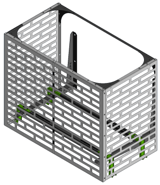 Корзина выполнена из прочной стали толщиной 0,8 мм, что обеспечивает высокую устойчивость к нагрузкам и долговечность. Перфорированная конструкция способствует эффективной вентиляции и удобству хранения. Габариты корзины (700х900х550 мм) делают её универсальным элементом для организации пространства в технических помещениях. Она предназначена для маркировки кондиционеров моделей 7–12, что упрощает идентификацию оборудования и повышает уровень стандартизации.