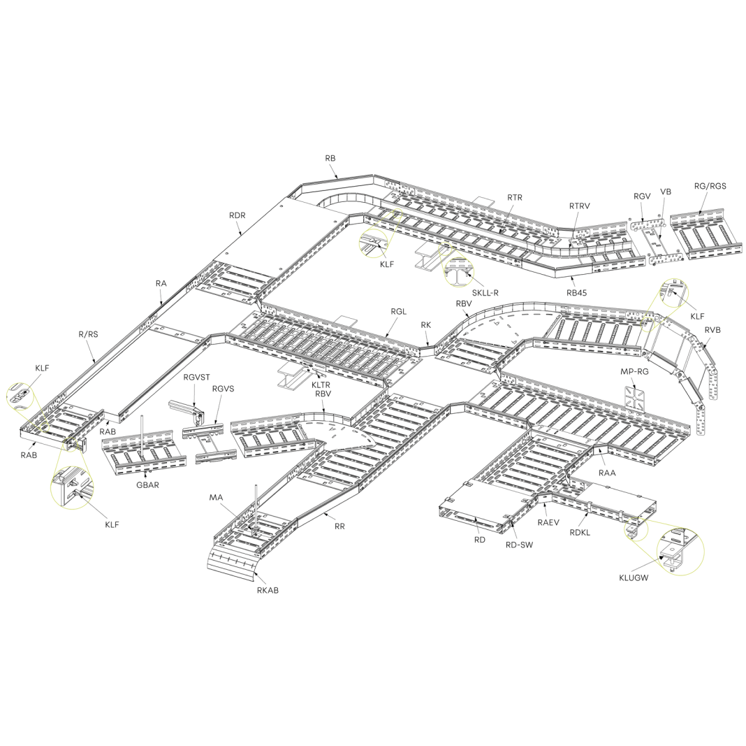 Для организации силовых и слаботочных кабельных трасс / линий внутри помещений и на открытых площадках.