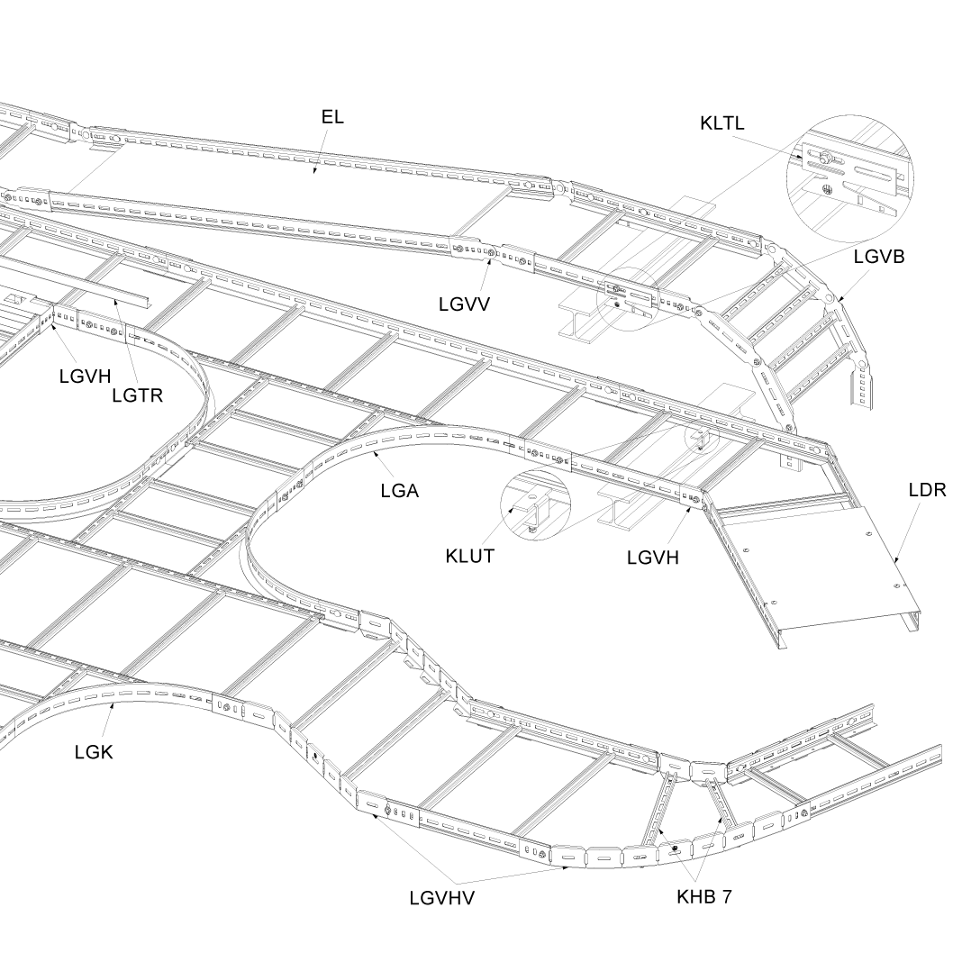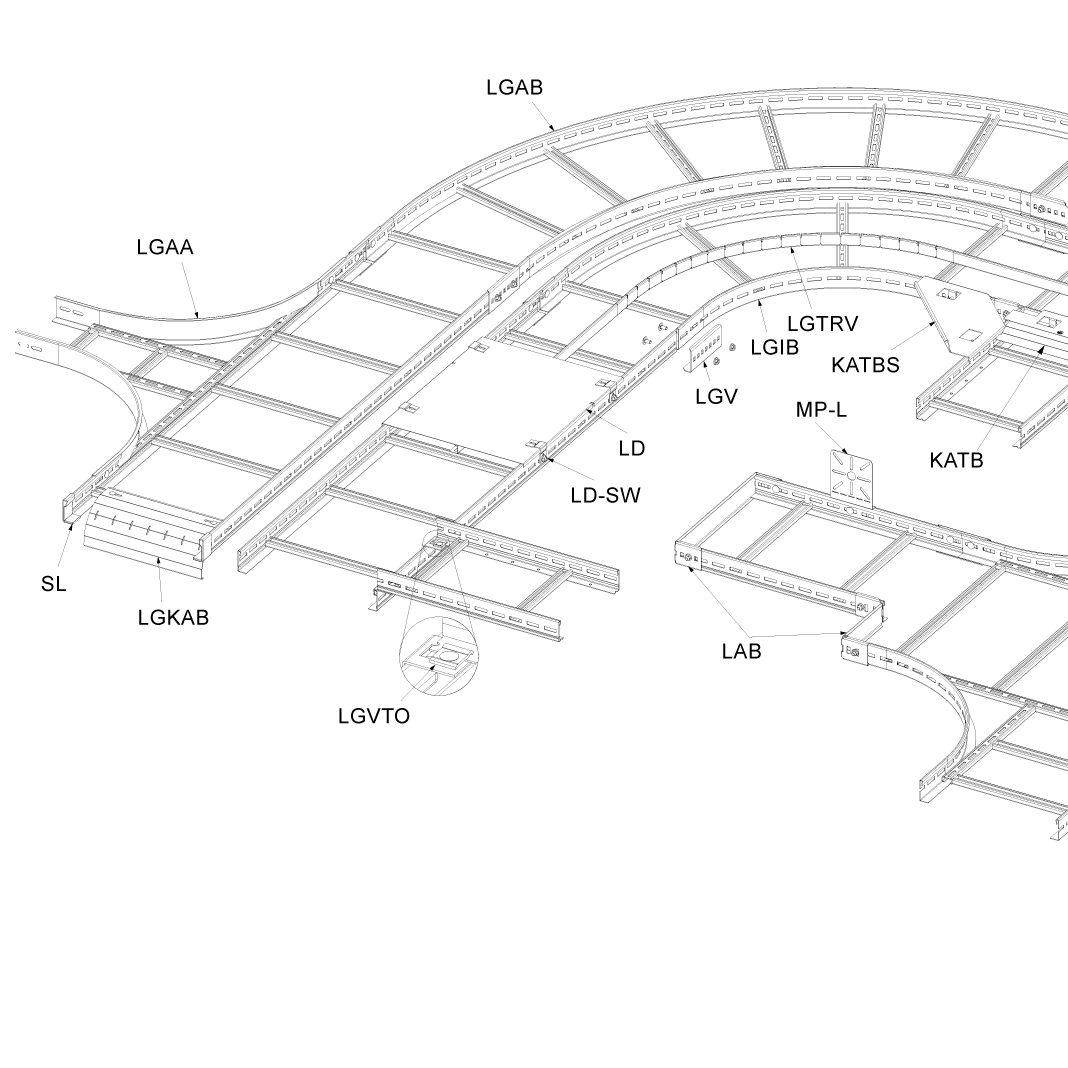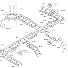 Угол лотка лестничного. Угол горизонтальный 90 / 45 градусов, поворот, ответвитель Т-образный, Х-образный (крестовина), переходник, угол лотка. Фасонные элементы лестничный лоток.