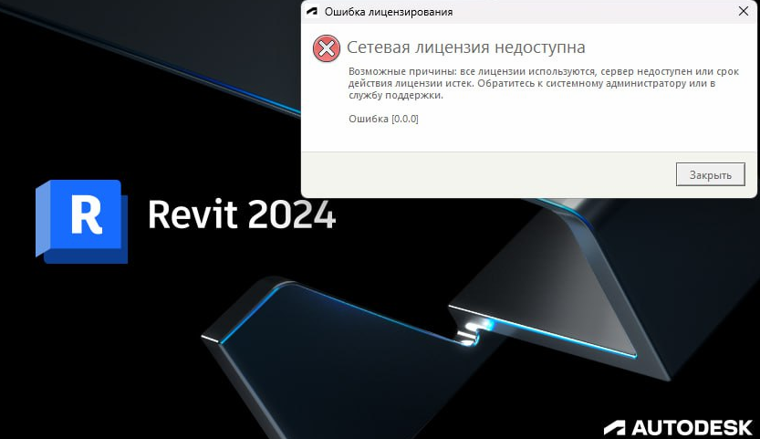 Ошибка сетевой лицензии REVIT (20-25). Сетевая лицензия недоступна