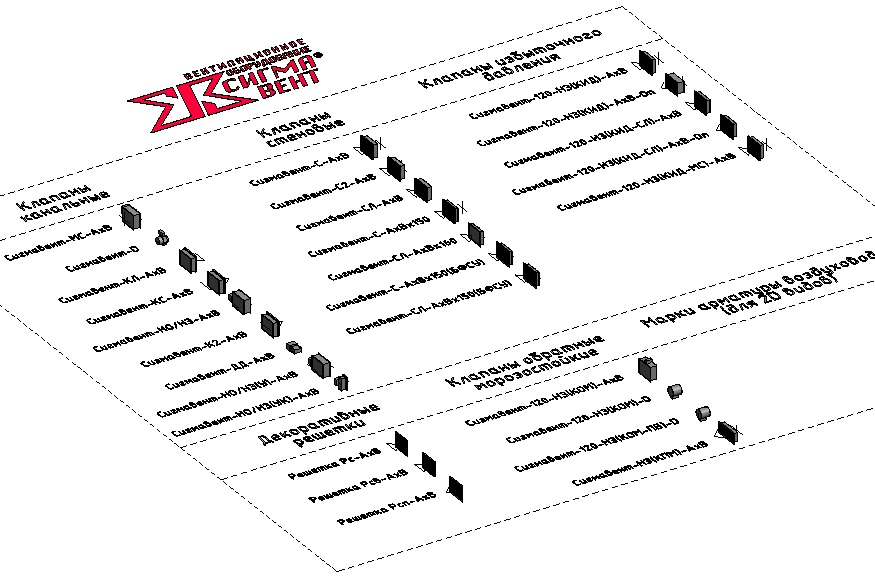 Проект, содержащий 23 семейства арматуры воздуховодов Сигма-Вент.
