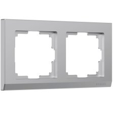 W1120109 Выключатель двухклавишный с подсветкой (cеребряный рифленый)