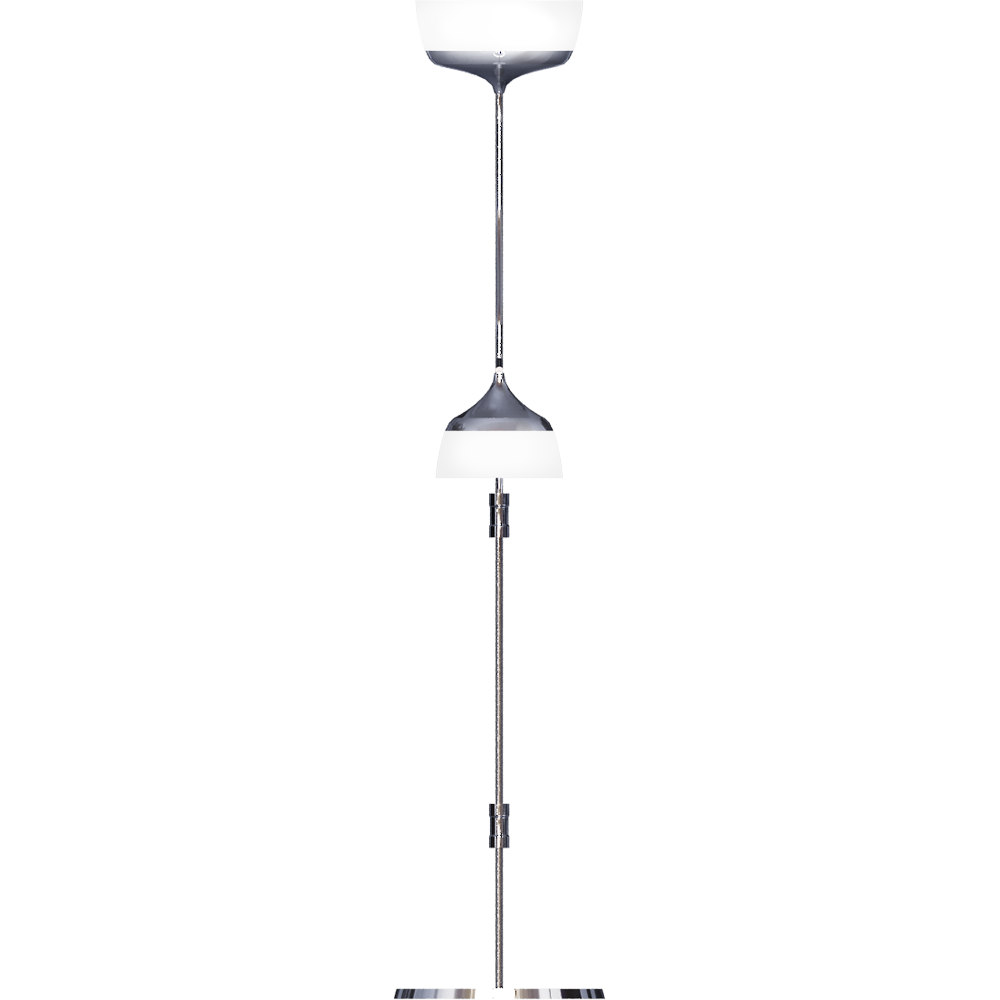 Торшер Dipodi - это двухфункциональный светильник, выполненный с чугунной подставкой и рассеивающими стеклянными абажурами. Он оснащен двумя отдельными лампами, которые горят отдельно, а также регулируемым диммером.