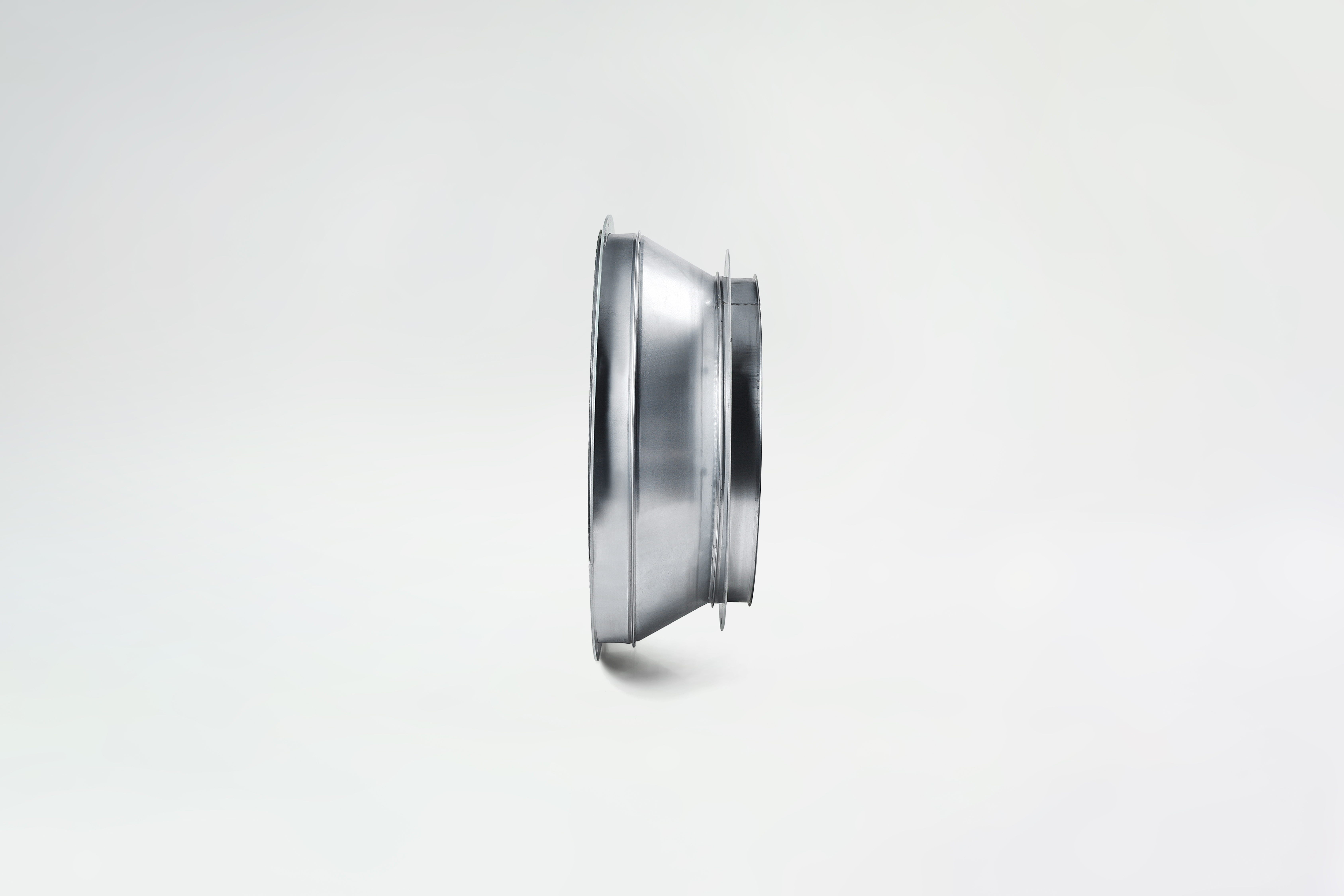 Чтобы уменьшить аэродинамические потери при свободном всасывание в вентилятор, инженеры НЕВАТОМ рекомендуют применять конфузор. Он представляет собой участок воздуховода с плавным изменением сечения под углом 30 градусов, закреплённый между двумя фланцами. Для вентиляторов в сейсмостойком исполнении применяют специальные сейсмостойкие конфузоры.