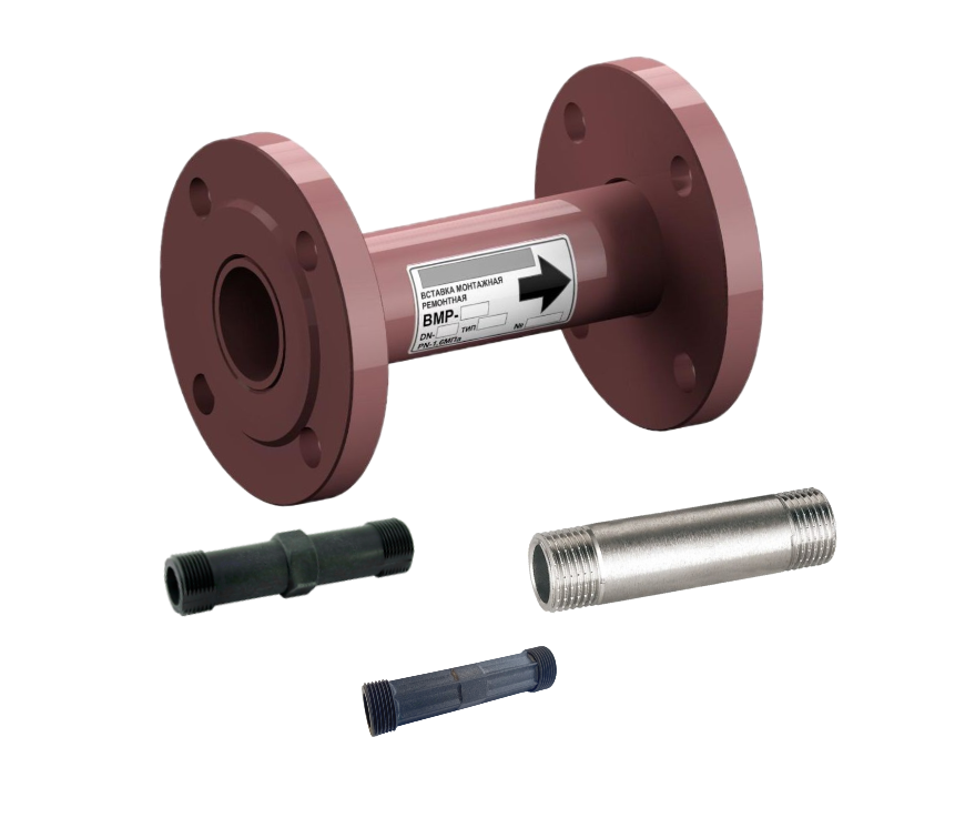 Монтажная вставка представляет собой трубчатый элемент с присоединительной резьбой или с фланцевыми соединениями на концах. Изготавливается фланцевая монтажная вставка из прочного, устойчивого к механическому воздействию материала. А монтажные вставки с присоединительной резьбой бывают как металлическими так и пластиковыми. Обеспечивает соединение трубопровода (подающего и обратного) в период: