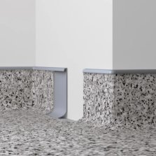 Такой плинтус можно часто встретить в медицинских учреждениях. Данный плинтус за счет специальной конструкции позволяет завести покрытие на стену. При использовании коннелюрного профиля место стыка стены и пола приобретает округленную форму, не давая пыли и грязи скапливаться вдоль стен. Кромка уже соединена с основанием для простого и быстрого монтажа. Монтаж в 3 раза быстрее, чем у трехсоставного плинтуса. Мягкий каркас позволяет монтировать плинтус вокруг колонн без нагрева феном. Монтаж выполняется на клей с помощью подрезки стуслом без дополнительных углов и торцов для долговечной отделки. Высота плинтуса: 95 мм. Радиус каннелюрного основания: 25 мм. Подойдет под линолеум до 4 мм.
