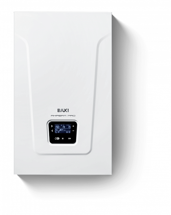 Главная особенность электрического котла BAXI AMPERA Pro - в нем используются твердотельные реле с воздушными охлаждением. Применение данной технологии дает большое количество преимуществ: гораздо больший эксплуатационный ресурс, высокое быстродействие, отсутствие механической контактной группы, бесшумность, гальваническая развязка от управляющей цепи и высокая надежность. Модельный ряд начинается с котлов мощностью 9 кВт, они могу быть как однофазными, так и трехфазными. Модели от 12 до 45 кВт поставляются в трёхфазном исполнении. Еще одним преимуществом котлов AMPERA Pro является улучшенная модуляция мощности. Модели от 9 кВт до 24 кВт имеют 6 ступеней модуляции мощности, а модели от 30 до 45 кВт - 9 ступеней. Это позволяет более точно регулировать мощность котла в соответствии с потребностями, что обеспечивает экономию энергопотребления и повышает комфорт и безопасность. AMPERA Pro оснащен разъемом OpenTherm и дин-рейкой внутри котла для быстрой и удобной установки системы удаленного управления BAXI Connect+.