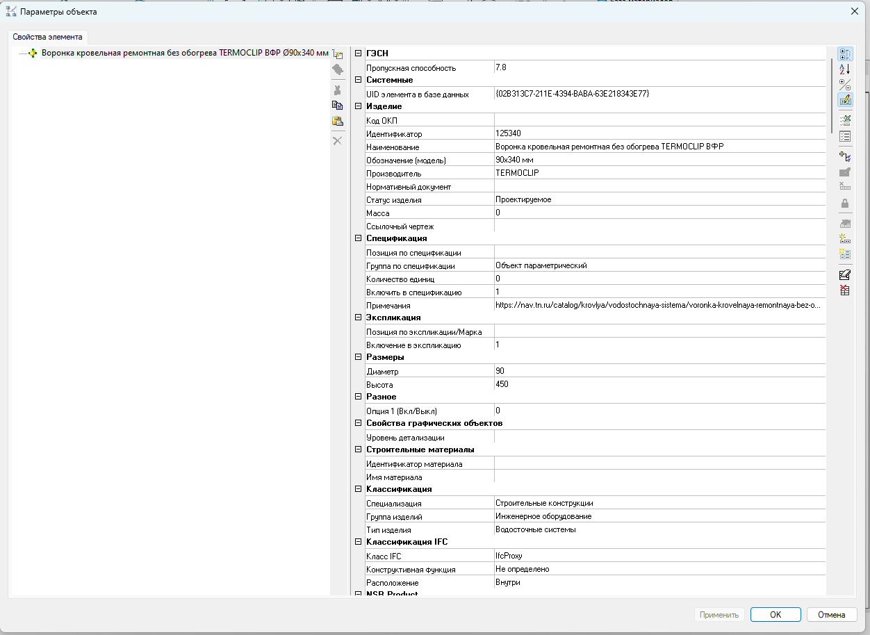 Параметры объектов заполнены необходимой информацией.