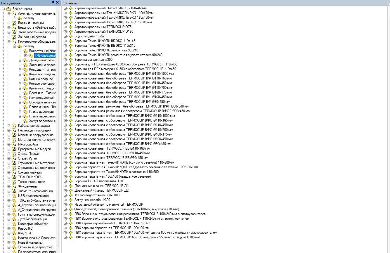При сохранении объектов в Библиотеку объектов nanoCAD BIM Строительство они отобразятся в структуре базы данных.