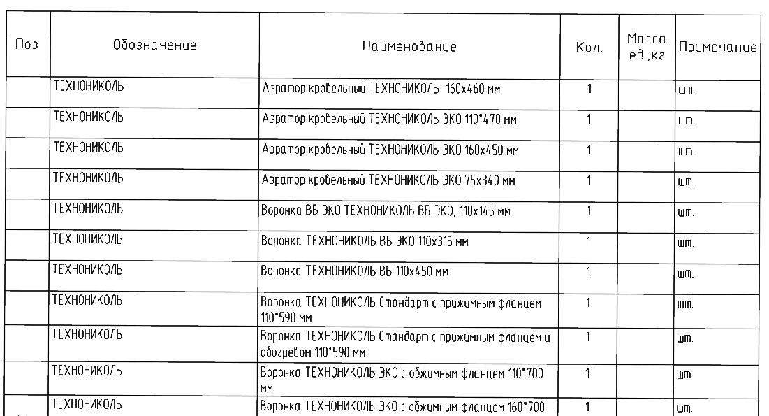- Воронки внутреннего водостока.