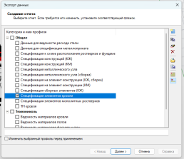 В настройках профиля спецификатора свяжите профили для специфицирования и профиль экспорта данных.