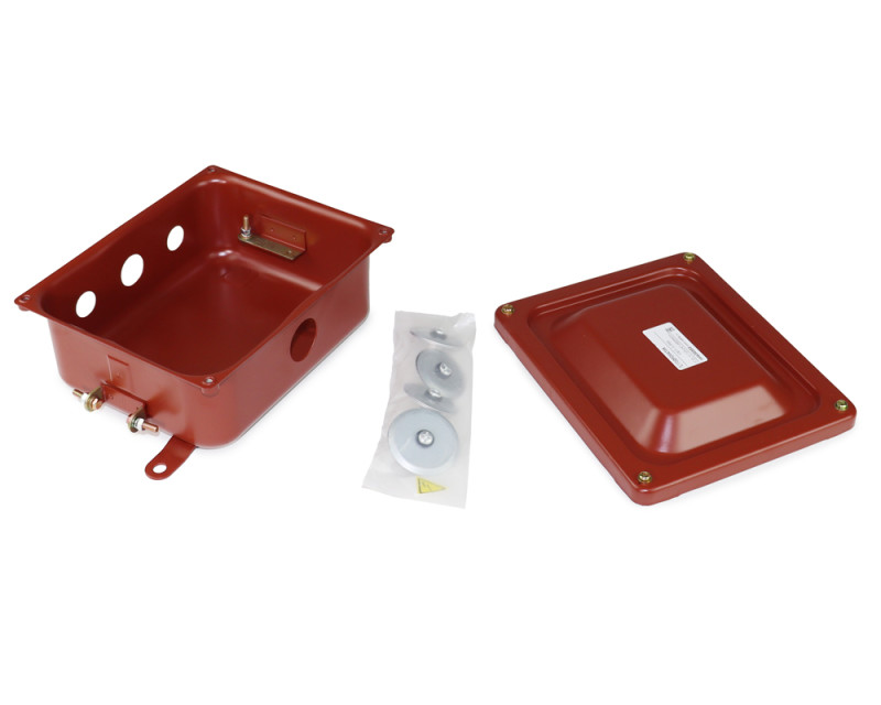 Коробка без клеммников – идеальное решение для установки необходимых дополнительных элементов с возможностью крепления на дин-рейку. При этом необходимо учесть, что дин-рейка в комплект не входит. Комплектация металлическими заглушками дает возможность установить необходимые фитинги или кабельные вводы в зависимости от требований по степени защиты, но не более IP65 и способов заведения кабеля: открытым способом, в металлорукаве или трубе.