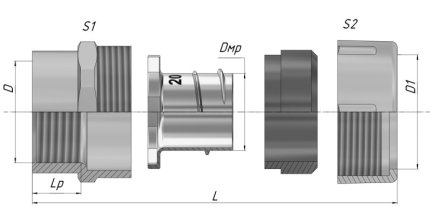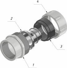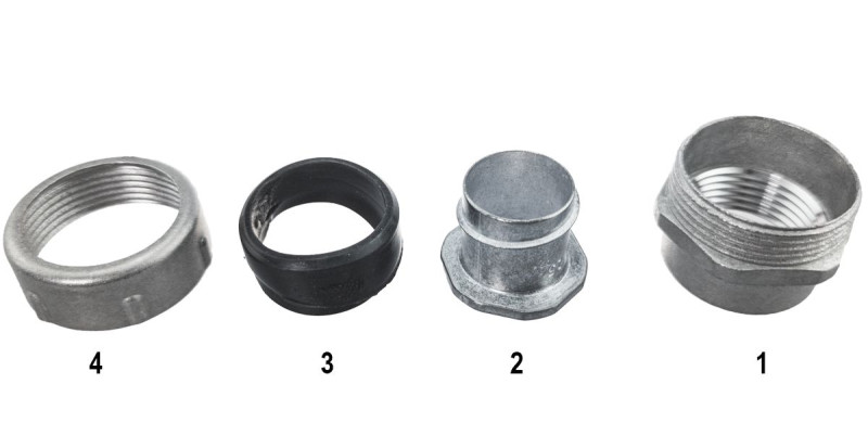 Резьбовой крепежный элемент РКВ является трубной арматурой, предназначенной для присоединения металлорукавов типов: РЗ-Ц, РЗ-ЦХ, РЗ-ЦА, Р3-Н, Р3-НП, Р3-ЦП, МРПИ, ШЭМ к резьбовым выводам оболочек электрооборудования (щиты, шкафы, коробки и др.), соединения данных металлорукавов с резьбовыми жесткими металлическими трубами в трубных системах для прокладки кабелей по ГОСТ Р МЭК 61386.21-2015, ГОСТ Р МЭК 61386.23-2015,а также создания надежного электрического контакта с их металлическими частями в целях обеспечения защитных мер по п.1.7.76 Правил устройства электроустановок. Резьбовой крепёжный элемент РКВ является трубной арматурой для надёжного соединения частей гибкой гофрированной металлической (или композитной) и жёсткой резьбовой труб в целях прокладки кабелей в трубных системах прокладки в соответствии с ГОСТ Р МЭК 61386.1-2014. Код классификации по ГОСТ Р МЭК 61386.1-2014: 024101542203 Климатическое исполнение: У2 Степень защиты: IP54 Температура монтажа, транспортировки и эксплуатации: -25°С ~100°С Температура эксплуатации в стационарном состоянии: -40°С~100°С Присоединительная внутренняя резьба: G по ГОСТ 6357-61 Материал корпуса: сплав цинка Материал уплотнения: резина МБС В комплект одного изделия входят: корпус (1), оконцеватель (2), уплотнение металлорукава (3), накидная гайка (4).
