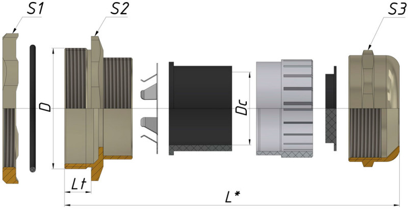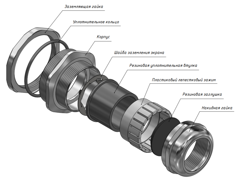 КВ (М12...80) — КАБЕЛЬНЫЙ ВВОД ВКЭ1 ДЛЯ ЭКРАНИРОВАННОГО КАБЕЛЯ