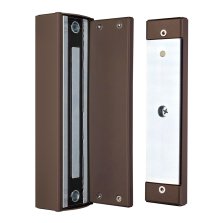 Влагозащищенный холодостойкий электромагнитный замок ALM-350FTK с усилием удержания 350 кгс предназначен для накладного монтажа на опорный столб распашной калитки.