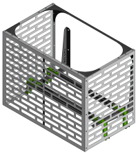 Корзина выполнена из прочной стали толщиной 0,8 мм, что обеспечивает высокую устойчивость к нагрузкам и долговечность. Перфорированная конструкция способствует эффективной вентиляции и удобству хранения. Габариты корзины (700х900х550 мм) делают её универсальным элементом для организации пространства в технических помещениях. Она предназначена для маркировки кондиционеров моделей 7–12, что упрощает идентификацию оборудования и повышает уровень стандартизации.